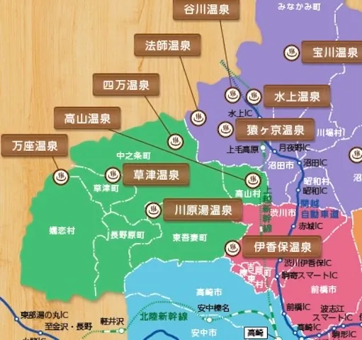 群馬県はかなり広い内陸県で、本州中央の山岳地帯に位置し、草津温泉や伊香保温泉、四万温泉、万座温泉などを有する温泉大国とも言われている。