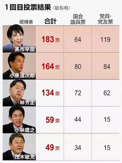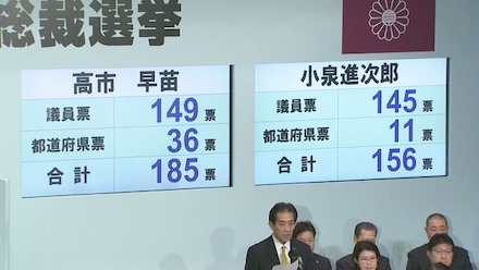 自民党総裁選挙で、高市さんが進次郎さんを破って勝利した。